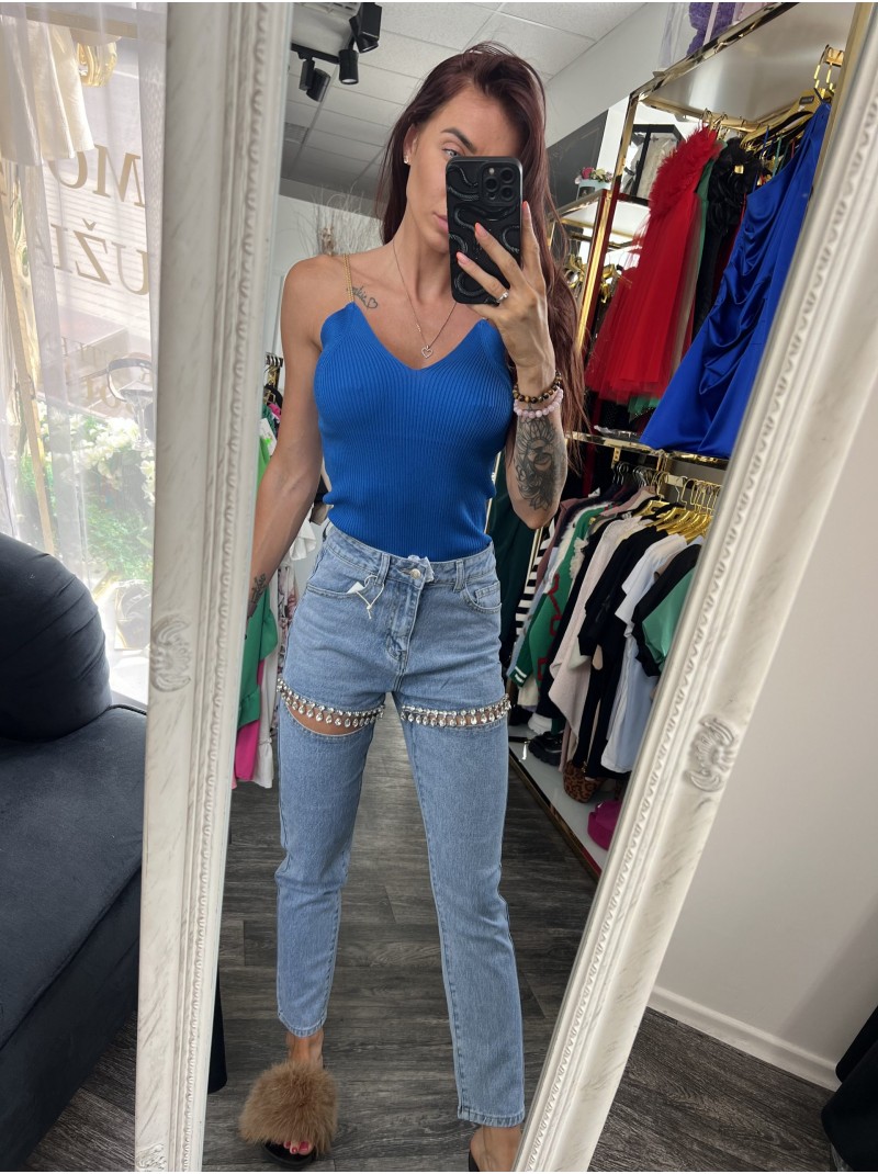 MĖLYNI DŽINSAI SU ĮKIRPIMAIS (LAŠELIAIS BLIZGUČIAIS)