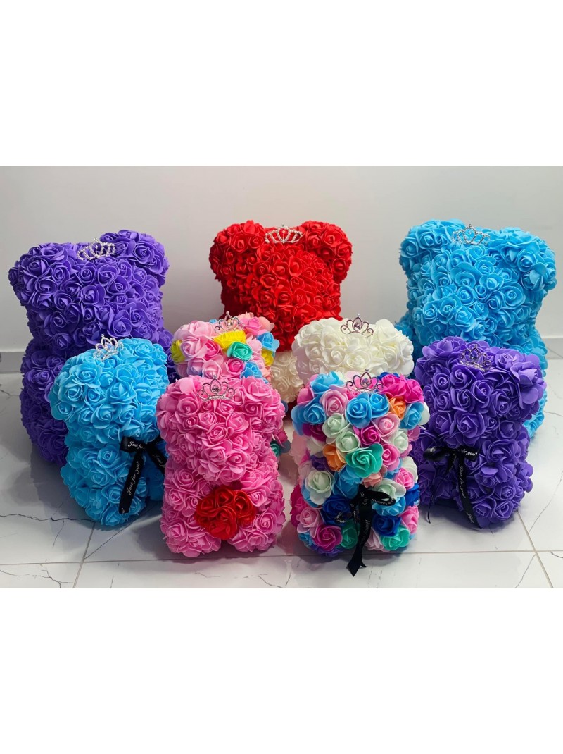 Meškučiai 40cm su karūnomis ir dėžute.❤️.Viskas iš dirbtinių rožių aukščiausios kokybės